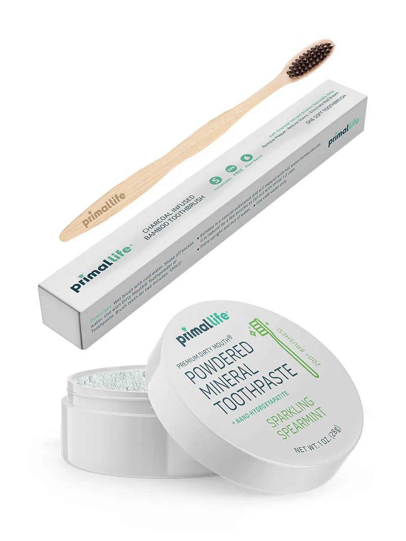 Our best-selling Dirty Mouth Toothpowder now comes packaged with our Charcoal-infused Bamboo Toothbrush. This dynamic duo will transform your tooth brushing routine, eliminating bad bacteria, cavity-causing plaque, and surface stains, leaving you with a fresh, clean mouth and pain-free gums.