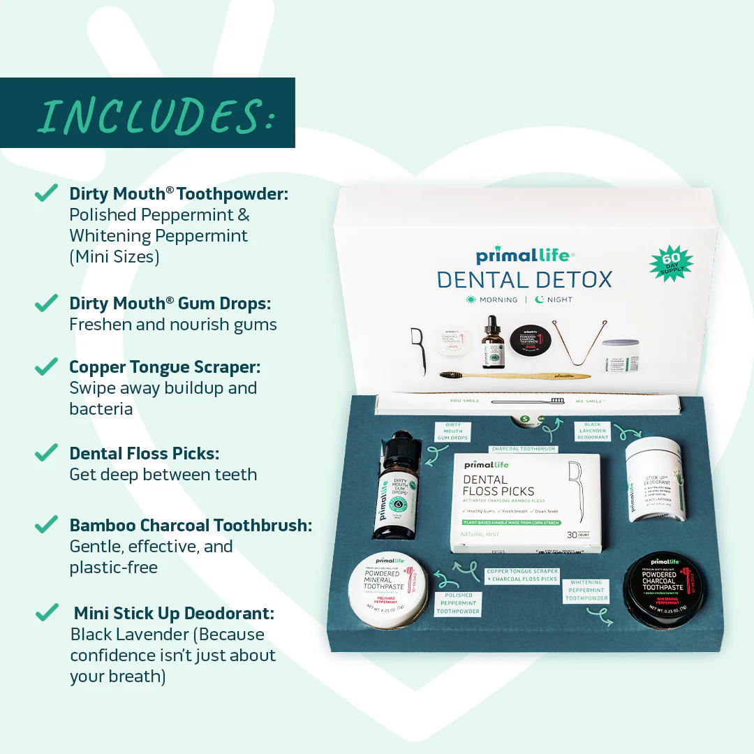 The Primal Life Organics Dental Detox Kit is you and your family's dentist in a box. Cavities and gum disease are contagious so it's important for the whole family to be on our Oral Wellness Program.