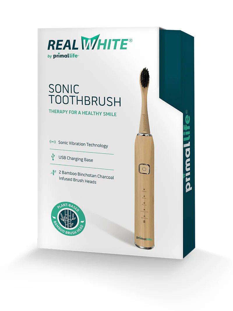 Real White Sonic Toothbrush gives you a white smile, fresh breath, healthy teeth, and better dental checkups. Designed for busy individuals who value effective products that are affordable and eco-conscious, this toothbrush combines the power of sonic vibrations with biodegradable bamboo brush heads, giving your teeth and the planet the love they deserve.