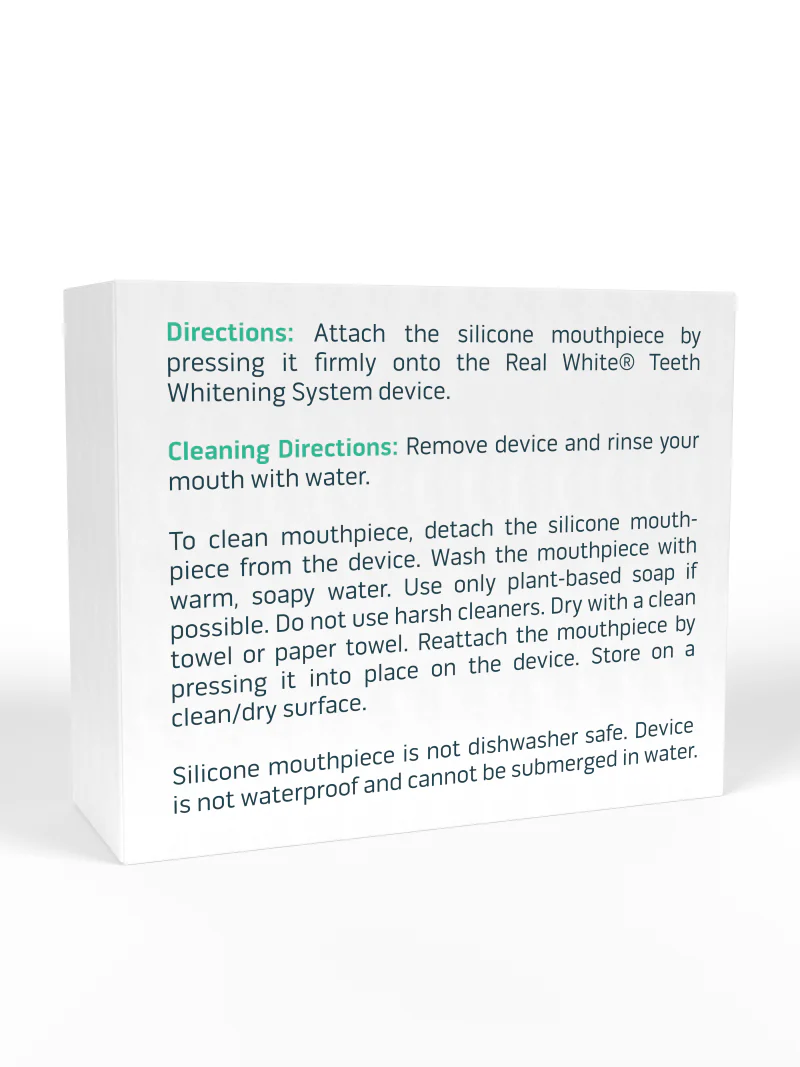 Attach the silicone mouthpiece by pressing it firmly onto the V4 Real White Teeth Whitening System device.
